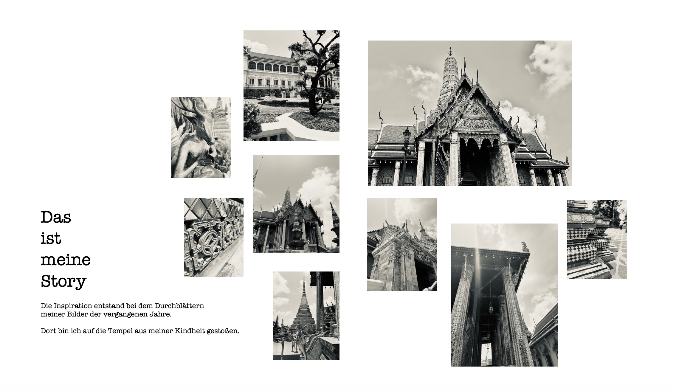 This project involved working with AI. I used artificial intelligence to help me generate various temples (memories from my childhood). And then put them together to create a collage. In my application example with the tablecloth, I wanted to depict the overstimulation and the associated forgetting. That threatens humanity with the incorrect use of artificial intelligence.